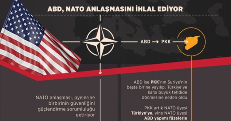 ABD, Türkiye'yi tehdit eden PKK'yı askeri yardımlarıyla Suriye sınırında güçlendiriyor. NATO anlaşmasına göre "müttefiği Türkiye"nin güvenliğini güçlendirme yükümlülüğü olan ABD, İttifak'ın kuruluş amacını ihlal ediyor.