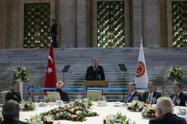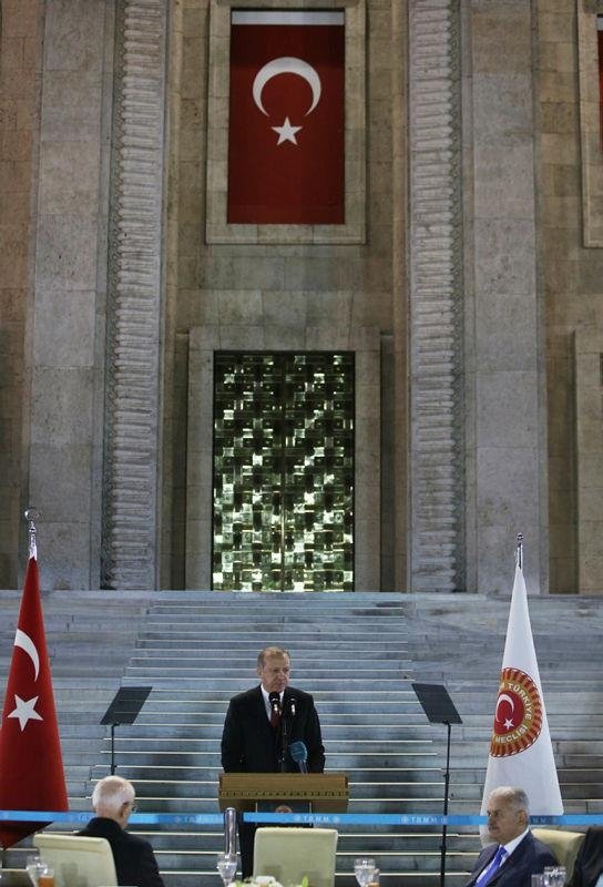 27 Mayıs 1960'ta ve 12 Eylül 1980'de kapısına kilit vurulan, 12 Mart 1971 ve 28 Şubat 1997'de adeta devre dışı bırakılan bu kurumun, 15 Temmuz'da kapısına dayanan darbecilere teslim olmadığını vurgulayan Erdoğan, Genel Kurul Salonu'nda bir araya gelen ve "Yapacağımız şey burada ölmektir" diyen milletvekillerinin her birini bir kez daha saygıyla selamladığını kaydetti.
