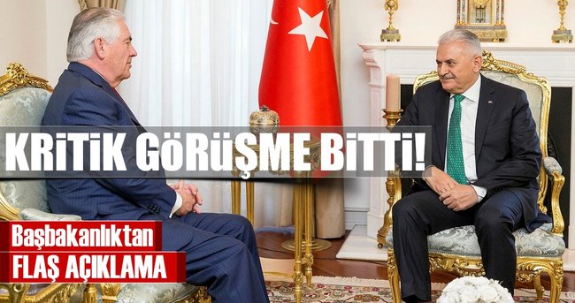 Başbakan Binali Yıldırım'ın ABD Dışişleri Bakanı Rex Tillerson'ı kabulünde, DEAŞ terör örgütünün Irak ve Suriye'den temizlenmesi için yürütülen çabalar ele alındı.