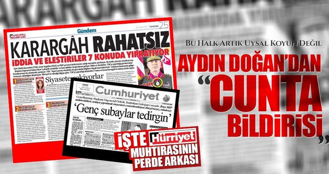 TSK’da başörtüsü yasağını kaldıran düzenlemeden rahatsız olan Aydın Doğan medyası provokasyon yaptı. Doğan’ın Hürriyet’i 28 Şubat dönemini anımsatan “Karargah rahatsız” başlıklı haberle TSK’yı siyasi iradeye karşı kışkırttı.