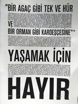 "Bir ağaç gibi tek ve hür ve bir orman gibi kardeşçesine yaşamak için hayır."
