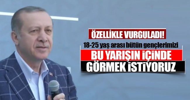 Antalya'da kendisini dinlemeye gelen vatandaşlara hitap eden Cumhurbaşkanı Erdoğan, "Gençler size parlamentonun kapısını kapatmak isteyenler var. Biz gençliğimize güveniyoruz. Seçme yaşı, evlenme yaşı, cezai süreç..vs 18. Ama seçilme yaşı 18 deyince olmaz diyorsun. 18 - 25 yaş arası bütün gençlerimizi bu yarışın içinde görmek istiyoruz. Genç, dinamik, güçlü bir parlamento için EVET mi? O zaman kalan 23 günü iyi değerlendireceğiz. Bu yarışta inşallah 16 Nisan akşamı Türkiye'yi yeni bir milada taşıyacağız. Ben 23 gün sonra özellikle Antalya'yı takip edeceğim" dedi.