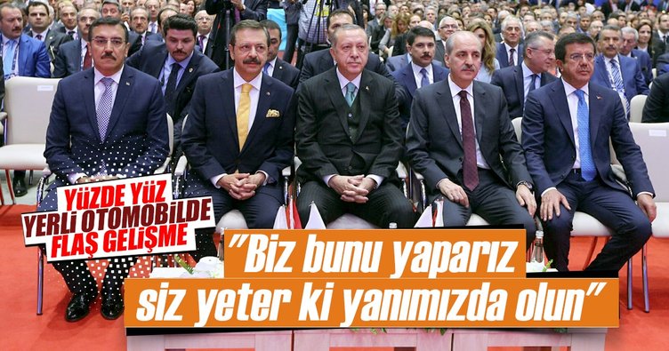 Cumhurbaşkanı Recep Tayyip Erdoğan TOBB Genel Kurulu'nda yerli otomobil çağrısını yinelediği sırada TOBB Başkanı Rifat Hisarcıklıoğlu söz isteyerek "Biz bunu yaparız. Siz yeter ki yanımızda olun" dedi.