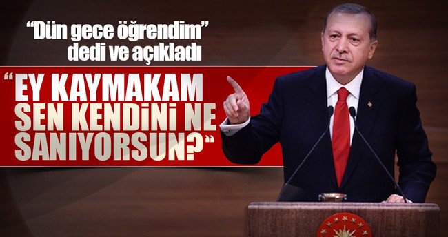 35. Muhtarlar toplantısında konuşan Cumhurbaşkanı Erdoğan bir gazisiyle konuştuğunda öğrendiği ve kızdığı olayı anlattı: Zaman zaman bazı şikayetler alıyoruz. Dün gece bir gazimizi aradım. Gazimiz evraklarını gönderiyor ama işleme alınmıyor veya ağırdan alınıyor. İlgili yerlere bildirdim. Ey Kaymakam sen kendini ne sanıyorsun, sen orada kalıcı mısın? O gazi kendini ne için feda etti! Bu ülke için! Eğer sen şimdi o makamda varsan o gazi sebebiyle varsın! Haddini bileceksin! Haddini bilmediğin zaman da sana haddini bildirirler! Bunu da bileceksin!