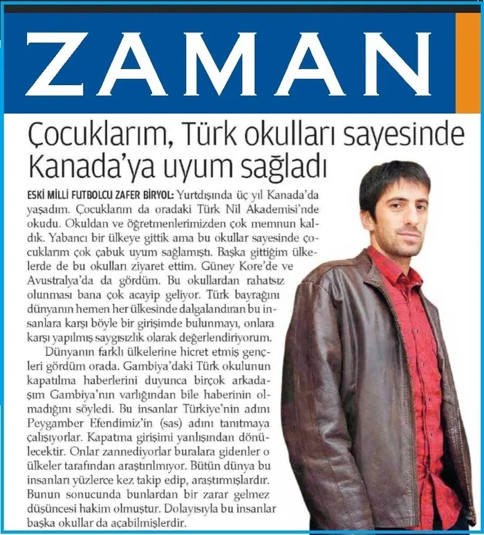 2011 yılında futbolu bırakan ve Kanada'ya yerleşen Zafer Biryol'un 2014 yılında FETÖ'nün medya organlarından Zaman gazetesine verdiği röportajda, terör örgütüne adeta övgüler yağdırdığı ortaya çıkı.