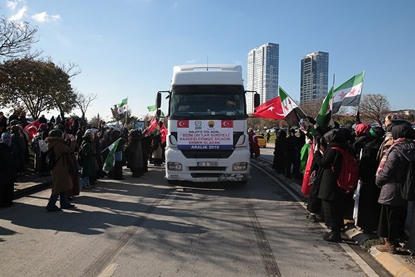 Yardımsever vatandaşlardan toplanan 500 TIR yardımın yola çıkması dolayısıyla Kazlıçeşme Meydanı'nda uğurlama töreni düzenlendi. "Halep'e yol Açın" ismiyle projelendirilen yardımın misyonu sadece ulaştırmak değil aynı zamanda dünyanın dikkatini Halep'teki katliama çekerek kamuoyu oluşturmak. Bu nedenle bir çok STK bir araya gelerek gönüllü araçlarının da bulunduğu ve her ilden katılımlarla daha da büyüyecek bir konvoy oluşturuldu.
