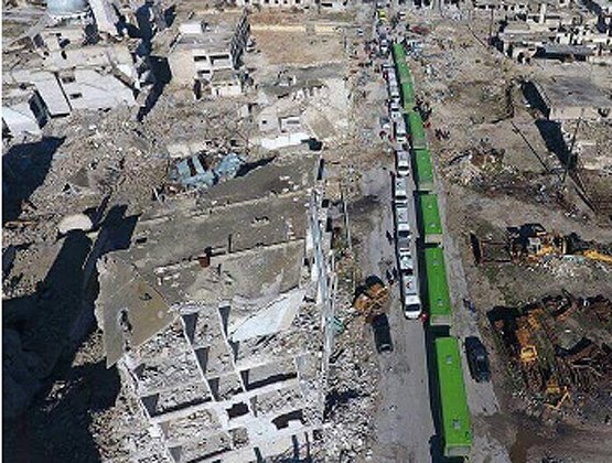 Böylece, kuşatma bölgesinden çıkan ilk konvoy, rejim bölgesinde bekleyen yeşil otobüslere ulaşmış oldu.
