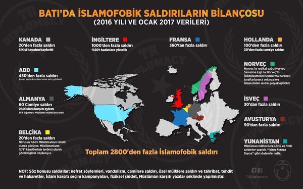 İşte dünya genelinde yapılan islamofobik saldırıların 2016 yılı ve Ocak 2017 verileri...