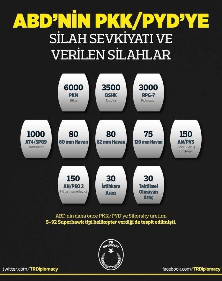 ABD'nin PYD/PKK terör örgütüne verdiği silahların sayısının bir kısmını ABD'li kaynaklar yayınladı. İşte o rakamlar ve Batının PYD/PKK terör örgütüne verdiği desteklerin kısa bir özeti!
