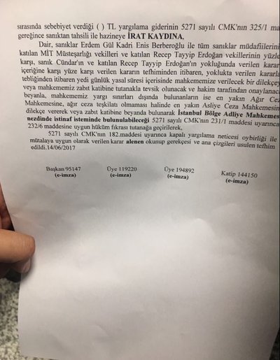 Can Dündar'a görüntüleri servis ettiği ortaya çıkan CHP İstanbul Milletvekili Enis Berberoğlu hakkında MİT TIR'ları görüntülerini Can Dündar'a servis ettiği gerekçesiyle "FETÖ/PDY örgütüne bilerek isteyerek yardım etmek" ve "Askeri ve siyasal casusluk" suçlamaları kapsamında dava açılmıştı. Bugün bu suçtan 25 yıl hapis cezası adı.