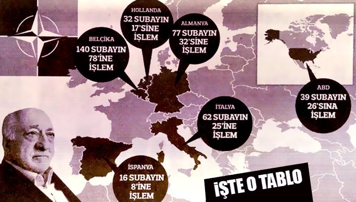 Ankara Cumhuriyet Başsavcılığı tarafından darbe girişimine ilişkin yürütülen soruşturma kapsamında, FETÖ'nün yurt dışı yapılanmasında önemli bilgiler elde edildi. Anayasal Düzene Karşı İşlenen Suçları Soruşturma Bürosu savcısı Mustafa Gökçe tarafından yürütülen soruşturma kapsamında, NATO'da 462 subayın görev aldığı tespit edilirken, bunlardan 237'si hakkında adli ve idari işlem yapıldığı kaydedildi. Darbe girişiminin ardından NATO'da sürekli veya geçici olarak görev yapan 237 FETÖ şüphelisi subayın görevlerine son verilip 'Türkiye'ye dönün' talimatı da verildi. Ancak bunlardan 200'ünün söz konusu talimata uymadığı öğrenildi.