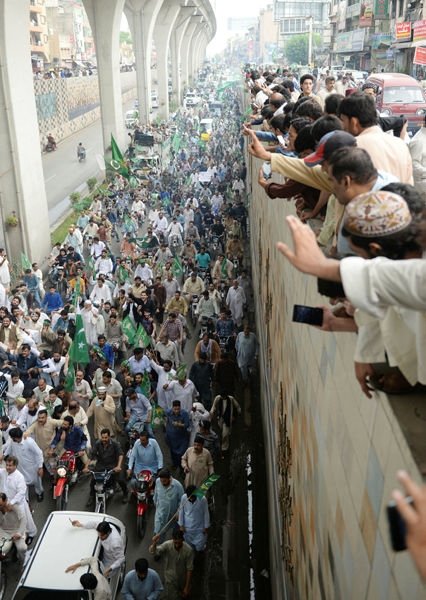 Pakistan Anayasa Mahkemesi'nin, aile üyelerinden bazılarının Panama belgeleriyle ortaya çıkan yolsuzluk iddialarına karıştığı gerekçesiyle Başbakan Navaz Şerif'in görevden uzaklaştırılmasına karar vermesinin ardından binlerce Navaz Şerif destekçisi Rawalpindi kentinde mahkeme kararına itiraz ve Şerif'e destek gösterisi düzenledi.