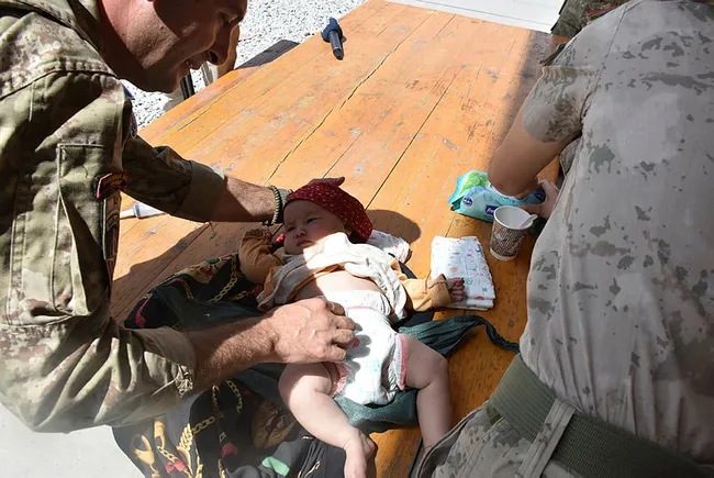 Baba ve bebeği güvenli bölgeye getiren Türk askeri, bebeğin altını temizleyerek mama ile karnını doyurdu. Bebek daha sonra babasına teslim edildi.