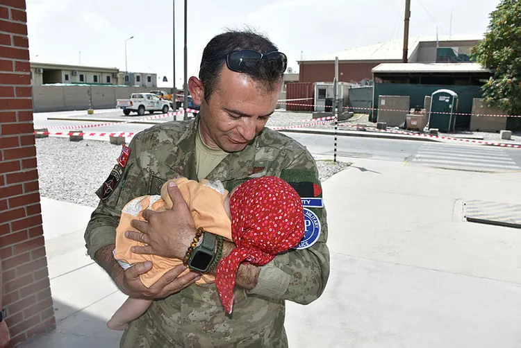 Afganistan'ın başkenti Kabil'de ülkeyi terk etmek isteyenlerin akın ettiği Hamid Karzai Uluslararası Havalimanı’nda çıkan kargaşada annesinden ayrı düşen iki aylık Hadiya bebeğe Türk askerleri sahip çıktı. Askerler, temizliğiyle ilgilendikleri ve mama verdikleri bebeği, babasına teslim etti.