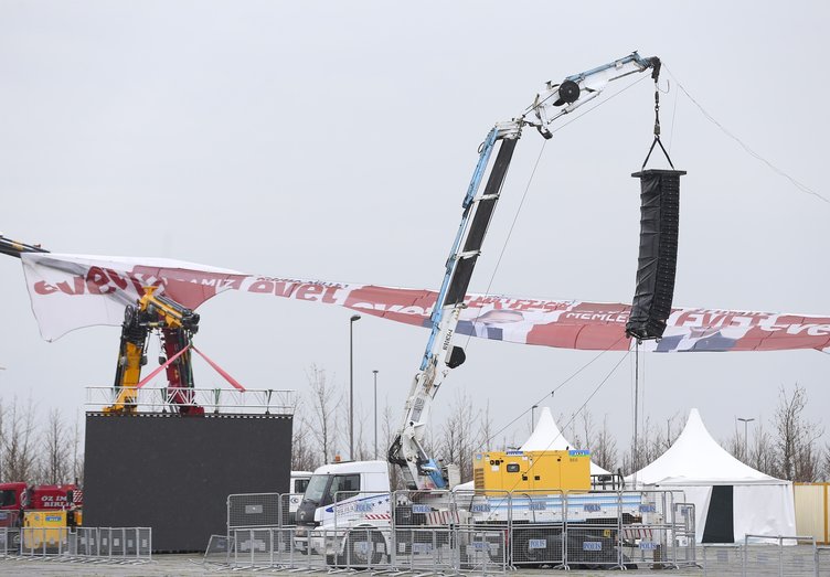 Miting için 100 metrekarelik ekranların olduğu 6 metre yüksekliğinde 95 metre genişliğinde bir sahne hazırlandı. 600 ton malzemenin kullanıldığı sahneyi kurmak için 22 kişilik ekip gece-gündüz çalıştı.
