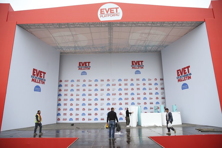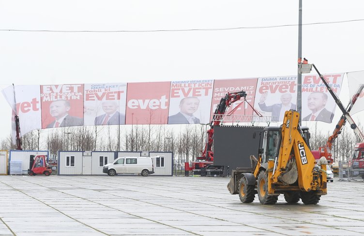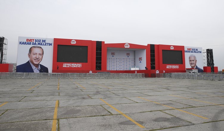 Cumhurbaşkanı Recep Tayyip Erdoğan ve Başbakan Binali Yıldırım'ın katılımıyla "Evet Platformu" tarafından Yenikapı Etkinlik Alanı'nda bugün 16.00'da düzenlenecek "Büyük İstanbul Mitingi"nin hazırlıkları tamamlandı.